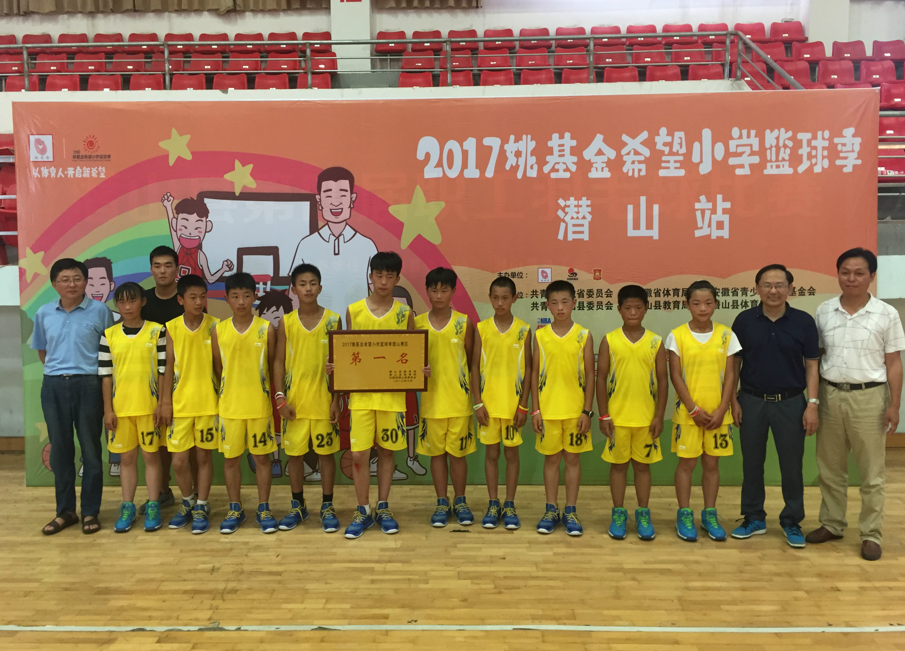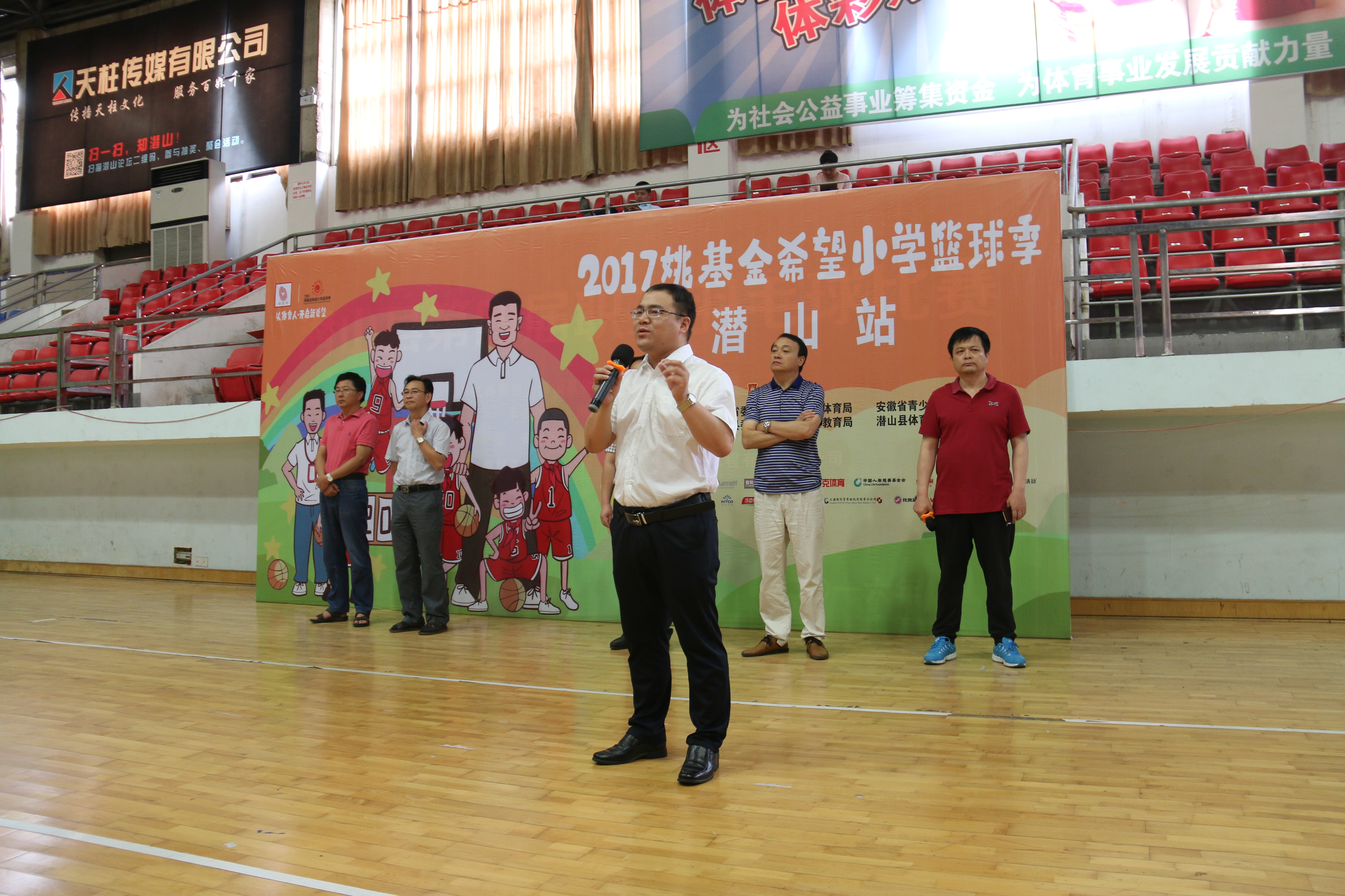 6月17-18日,由团县委、教育局、体育局共同举办的2017“姚基金希望小学篮球季”潜山赛区比赛在县体育馆举行。副县长储诚炜出席开幕式并讲话,团县委、教育局、体育局、主要负责人参加活动。