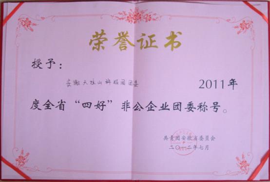 日前,安徽省2011年度“四好”非公企业团委评选活动揭晓,安徽天柱山科技园团委喜获2011年度全省“四好”非公企业团委荣誉称号,这是潜山县唯一获此殊荣的单位。