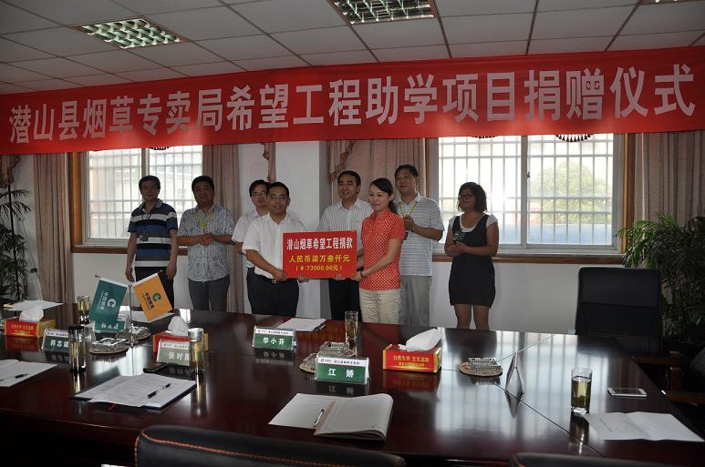 县烟草专卖局表示将继续支持县希望工程事业,共同为构建“实力潜山、活力潜山、魅力潜山、和谐潜山”贡献自己的力量。