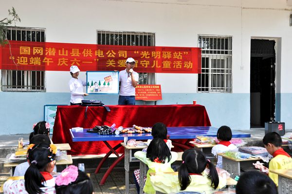 5月17日,国网潜山县供电公司青年志愿者带着精心准备的书包、粽子、书籍、羽毛球拍等“六一”小礼物,来到县黄铺镇八塅小学,开展“迎端午庆六一”关爱留守儿童活动。