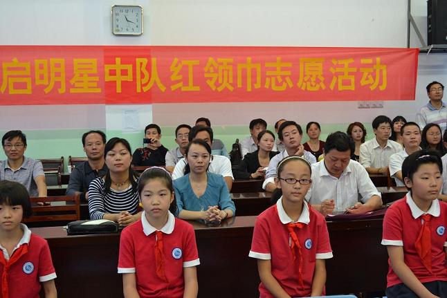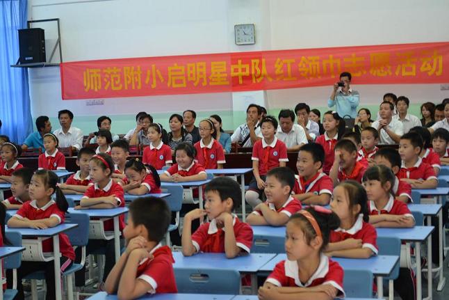 合肥师范附属小学的少先队工作一直走在全省前列,多次受到省委领导称赞。考察团一行首先观看了学校启明星中队的“光荣啊,少先队”主题队会。随后在学校负责人陪同下参观学校的社团功能室,并听取了学校德育处王玲玲主任的主题为《每个孩子都是天使》的讲座。